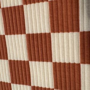 Chic knit top with a cream and rust pattern. Perfect for casual wear.