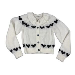 UO Kimchi Blue Marabell Icon Cardigan Y2K Babydoll Hearts White & Black - Small. In excellent preowned condition - minimal signs of wear. No stains or flaws. Retails for $69 - currently sold out.