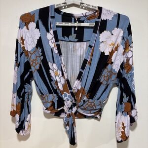 Free People That's A Wrap Tie Front Top Blue Black Combo Women's Size Medium