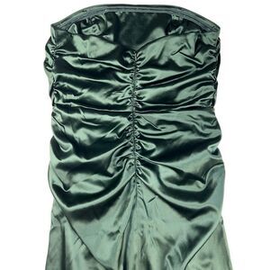 Elegant dark green midi dress. Strapless design. Perfect for special occasions.