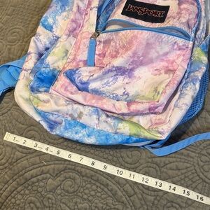 New Without Tags! Never Used. Charming Jansport backpack with pastel tie-dye. Fun and functional. 6 zippered pockets.
