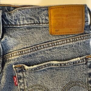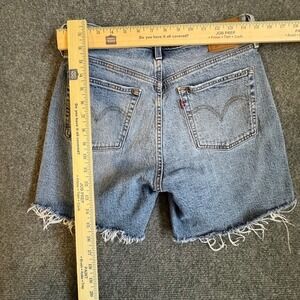 Classic Levi's jean shorts with a frayed hem. 501's cutoffs.