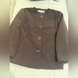 Sophisticated dark brown blazer with button-up front. Ideal for professional settings.