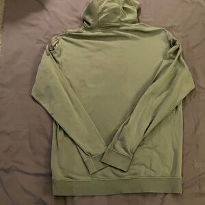 Comfortable olive green hoodie. Features a drawstring hood and front pocket. Perfect for casual wear. Golf logo.