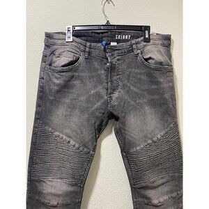 H&M Divided Skinny Jeans Mens 36 Gray Washed Biker Moto Ribbed Stretch Denim
