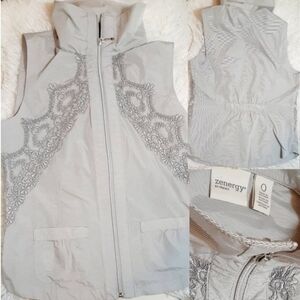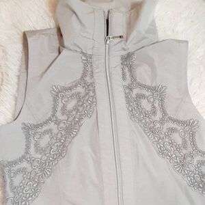 Lace Peaks Detail, Zipper Front, Gathered Elastic Mid Waist, High Collar Tank Top