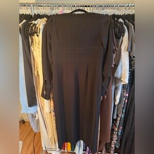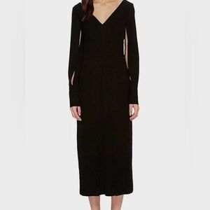 Yigal Azrouël Crepe Midi Length Dress Open Slit Long Sleeve