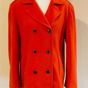 Talbots Petites women size 8 orange double breasted peacoat