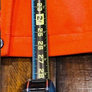 This Talbots Petites women size 8 orange double-breasted pea coat is a stylish and practical outerwear option for the colder seasons. Made from wool with a wool blend lining, this mid-length coat features a classic solid orange color, long sleeves, and a collared neckline. The double-breasted button closure, lined interior, and pockets make it perfect for casual occasions in the winter, fall, or spring. With a regular fit and lightweight design, this Talbots peacoat is a versatile addition to any woman's wardrobe.
