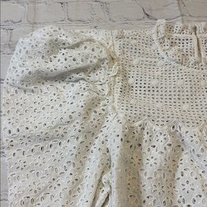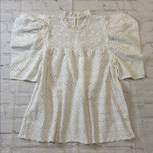 Beautiful off-white blouse in a floral cotton poplin eyelet with puff sleeves - in excellent/like new condition.