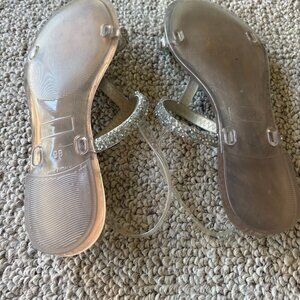 Stuart Weitzman Silver Crystal Strappy Sandals Size 38 Luxury Designer Resort