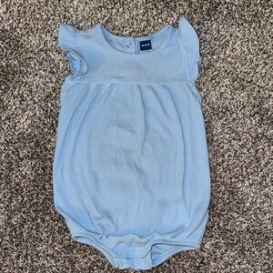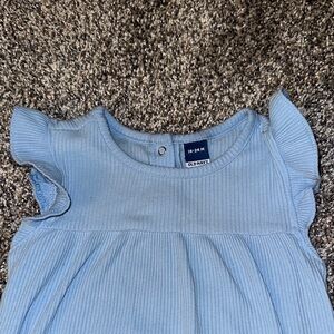 Charming sky blue bodysuit with ruffled sleeves. Soft ribbed fabric for comfort.