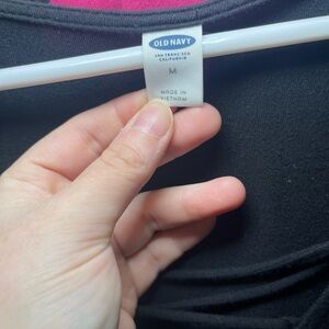Elevate your wardrobe with this elegant black V-neck top. Perfect for any occasion, this top offers both style and comfort. Very stretchy and loose fitting. In great preowned condition