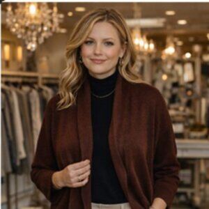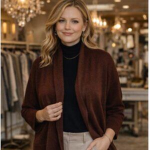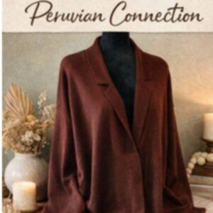 Details• Brand: Peruvian Connection• Size: 3X• Color: Rich chocolate / warm brown• Fabric: 100% Pima Cotton• Origin: Made in Peru• Style: Open front, relaxed drape, long sleeves• Condition: Excellent — no noted flaws