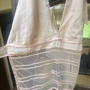 Experience the allure of this delicate pink lace chemise, perfect for enhancing your intimate wardrobe.