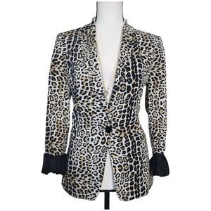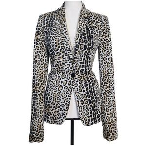 Zara Basics Jacket Size M Leopard Print Stretch Fitted Jersey Viscose