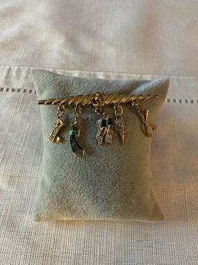 Filigree gold tone drop earrings features a pearl in the center. The post has a faceted clear rhinestone. The bottom of the earrings are amber color stones.