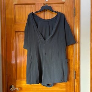 Free People Hot Shot Romper! Brand new with tags! The color of this romper is black but it has like a washed look to it like in the pictures and stock photo! This romper is super soft, oversized, and has a shapeless silhouette and very comfy! It has two deep pockets in the front and back and has a V-shaped back detail!