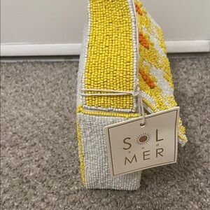 Elevate your style with the Sol & Mer Yellow Floral Beaded Shoulder Bag. This chic accessory features vibrant yellow and orange floral beadwork, perfect for adding a touch of elegance to any ensemble.