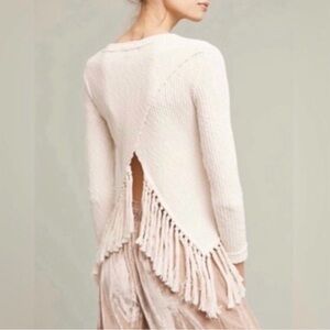 Refined, yet edgy twist on a classic long sleeve sweater. Split back offers a peek-a-boo feature and extra breathability. Ribbing adds texture and dimension to this classic cut. Dress up or down with heels or sandals.