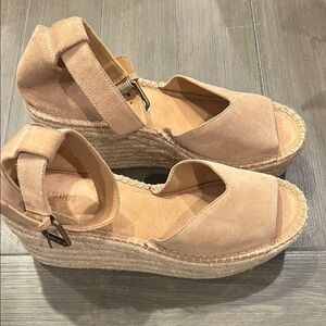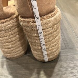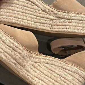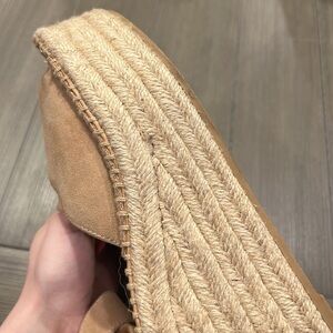 Step into style with these chic tan espadrille wedge sandals. Perfect for any occasion, these shoes offer comfort and elegance. Elevate your wardrobe with this versatile pair.