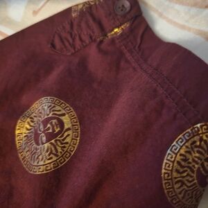 Burgundy with gold Medusa printed 100% cotton gently worn Retro style