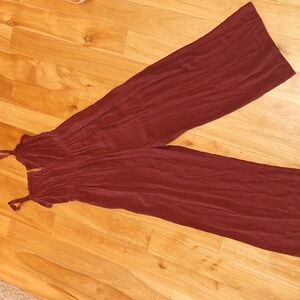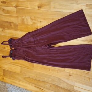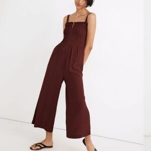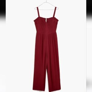Madewell Pintuck Cami Wide-leg Jumpsuit Size 00 Burgundy Oxblood Wine