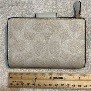 Elegant Coach women's wallet in a classic creamy white color. Perfect for organizing your essentials with style.