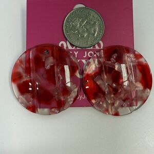 This super cool long necklace allows you to wear it in different ways. The links disconnect and connect which allows you to wear it in different layers and different lengths. A very stunning statement piece with the matching oversize stud earrings. Color is a marbleized look with a mix of red and white..Both are brand new with the original tag. Comes from a smoke free home.