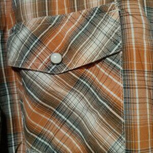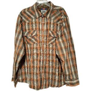 2XL👔Levi's Western Brown&Orange&Tan Plaid Button Down Shirt