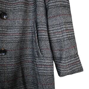 Stay stylish and warm with this elegant gray plaid coat. Perfect for any occasion.