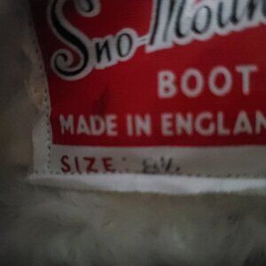 Vintage "Sno-Mount" boots will turn heads everywhere you go. These fur boots were made in England. They are not only stylish, but they will keep your feet nice and warm. Size 8.5