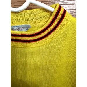 Vintage 60's Raglan Creslan Sunshine Yellow Sweatshirt Small Short Sleeve USA. RN 14179. Red and black accents on the collar and sleeves.