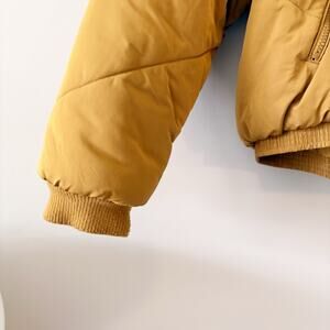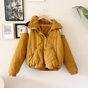 Free People Heidi Ski Puffer Jacket Mustard Chevron Color‑Block Zip Front Size M