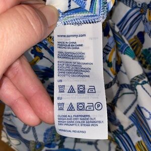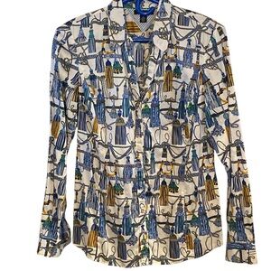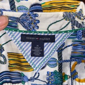 Tommy Hilfiger Blue & Gold Tassel Pattern Button Long Sleeve Up Shirt Old Money