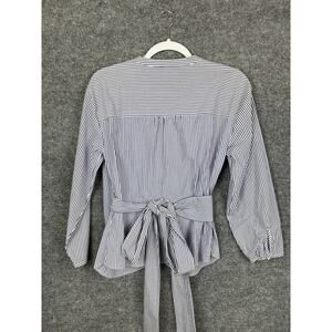 J. Crew Women S Blue White Stripe Wrap Long Sleeve Top Blouse V Neck