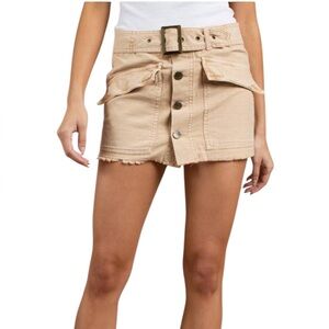 Free People Hang On Tight Belted Utility Mini Skirt in Sand Size 6 NWOT