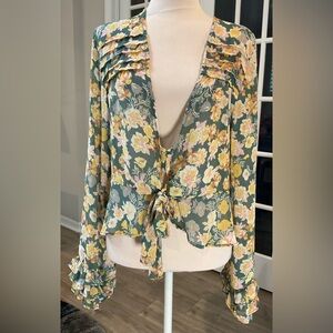Free People Calisto Floral Tie-Front Top - Boho Ruffle Blouse