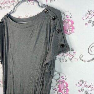 Stylish gray women's top with button details on the shoulders. Perfect for casual outings or a relaxed day at home. Uk XS