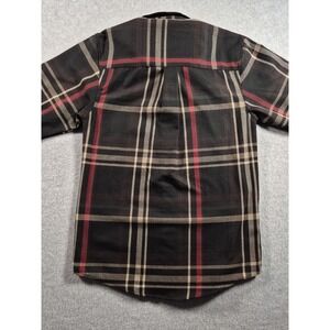 DIXXON Flannel Haymarket Bomb Graphic Men's Shirt Brown Plaid Button Up Sz XS