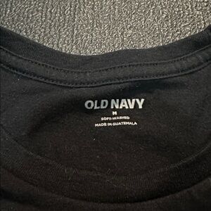 Black tee with a vibrant floral pattern. Features a decorative vase with colorful flowers.
