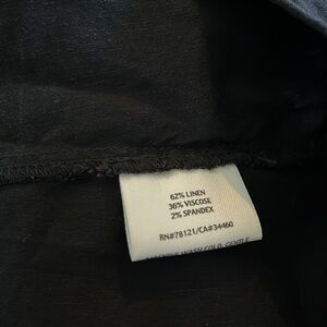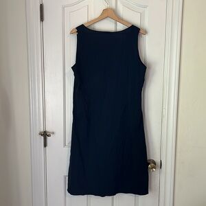 This is such an adorable and classy EF piece. Linen, Viscose and Spandex make this a breathable, stretchy and unbelievably comfy dress. Very flowy and relaxed fitting. Deep V-Neck. Smocked gathering right below the neckline. Flattering and easy to wear. Dress it up or down. SO cute. In excellent condition. No signs of wear or flaws noted.