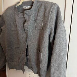 ZARA shoulder pad knit grey cardigan