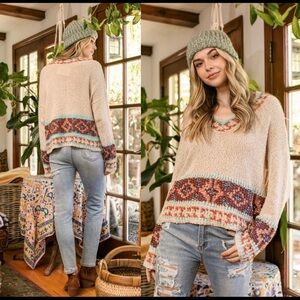 You are going to fall in love with this soft and flattering Aztec patterned pullover V-neck. Relaxed and slouchy silhouette. LOVING!!