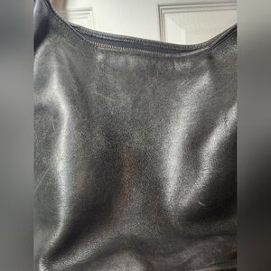 Details: Leather Bucket Bag. Top zipper closure. Inside open pocket. Adjustable extra-wide shoulder strap.