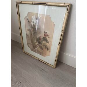 Lili Gaydos Iris and Butterfly Print Art with Bamboo Frame 1978