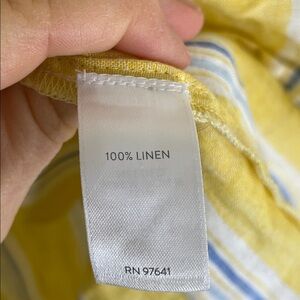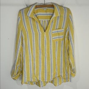 J. JILL Love Linen Yellow Striped Collared Popover Top Size Medium