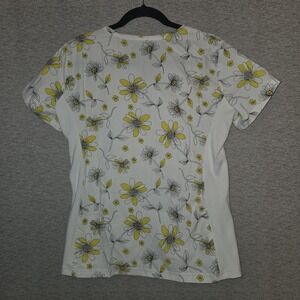 Health Pro Uniform Scrub Top Women's Size Small White Yellow Flowers Medical