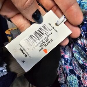 Simply Southern Smocked Square Neck Crop Top Shellfish Print Blue Pink Size M