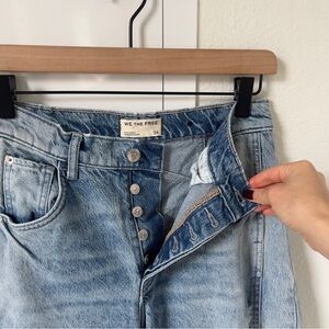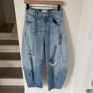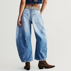 NWOT Free People We The Free Good Luck Mid-Rise Barrel Jeans in Barnyard Blue